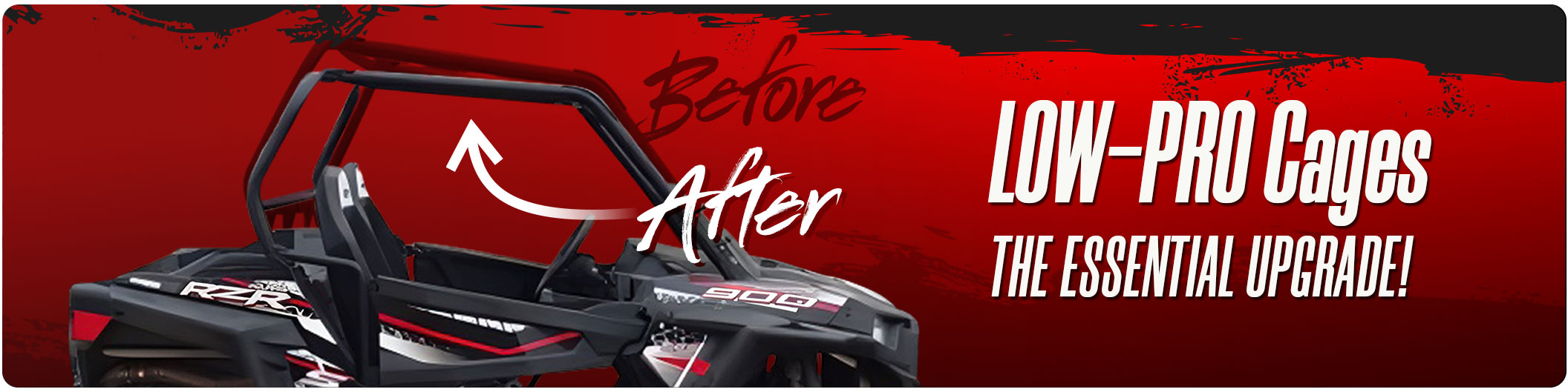 From enclosed trailer clearance to pure off-road style, CW Motorsports Low-Pro Cages are the smart choice for RZR riders who demand both performance and looks. Powder coat color options let you match your machine perfectly. Built tough. Built for you. Built to ride.”