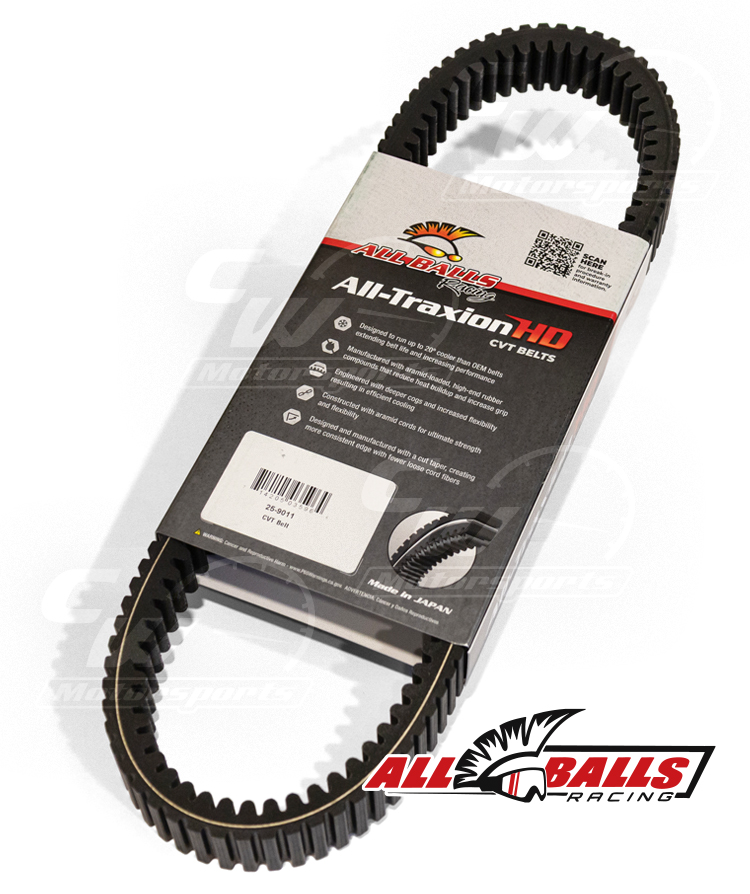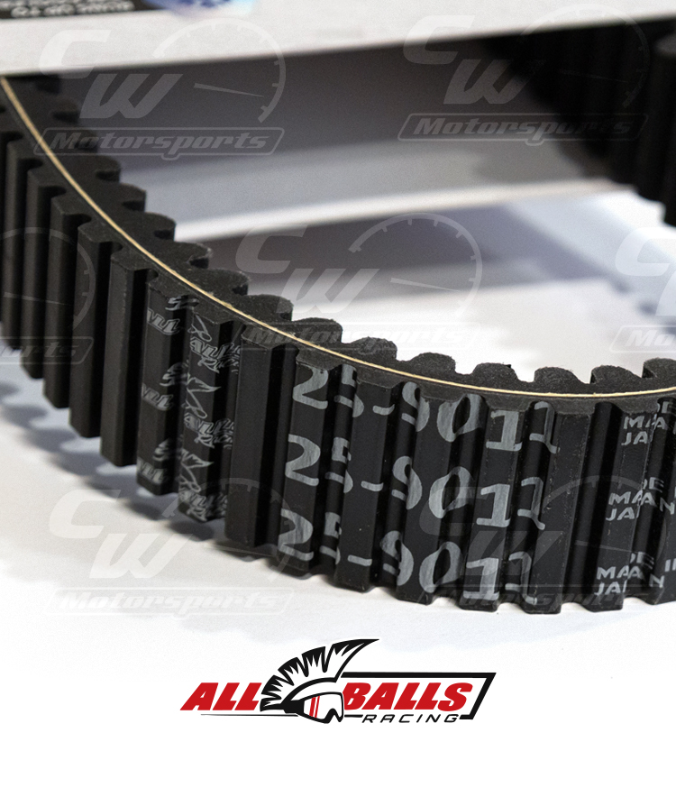 All Balls Racing belts are engineered to run up to 20 degrees cooler, proven in washout comparative testing, and built to go the distance. Deeper cogs and increased flexibility reduce rigidity and heat build-up, while high-end Japanese rubber components and high-strength aramid cords and fibers keep you gripping and moving forward. The Cut Taper manufacturing process delivers a cleaner, more consistent edge with fewer loose cord fibers than Ground Taper alternatives. Experience Less Downtime, and More Riding!